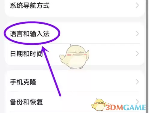 2. 进入系统和更新页面后,继续选择【语言和输入法】。