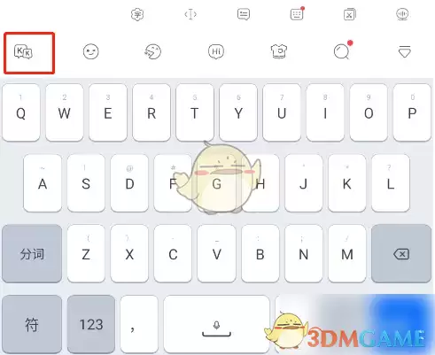 1. 首先启动KK键盘应用程序,在界面左上方找到"KK"标识,点击即可进入设置界面