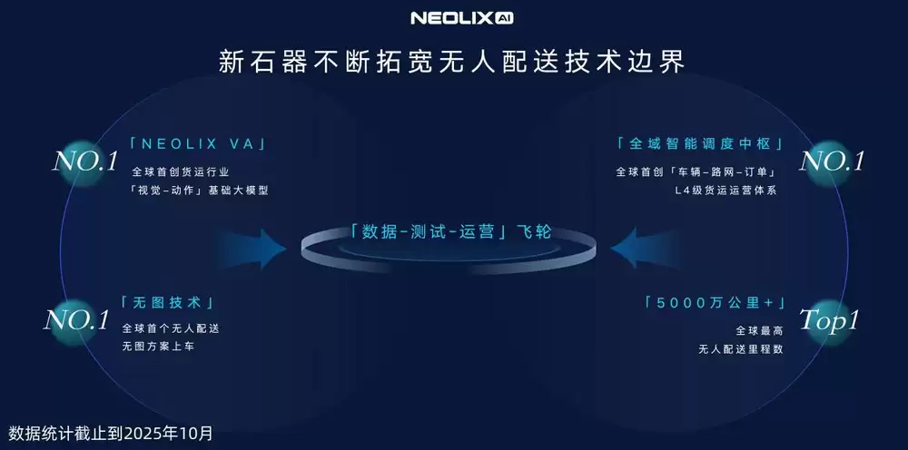 公司已在货运行业率先实现“视觉-动作”基础大模型“Neolix-VA”首次上车,实现了真正的端到端自动驾驶。通过行业首创的空间智能与行为推理能力,新石器的RoboVan车队能够自然融入复杂交通环境,高效平稳完成配送任务。该技术可满足城市公开道路场景任意点对点的物流需求,同时支持全球化部署需求。新石器还首创L4无人配送“全域智能调度中枢”,通过AI算法与大数据的深度融合,实现“车辆-路网-订单”的动态最优匹配,构建起“低成本、高时效、可规模化”的智慧运力运营体系。