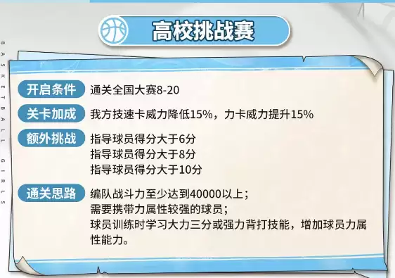 《代号:篮球少女》高校挑战赛通关攻略