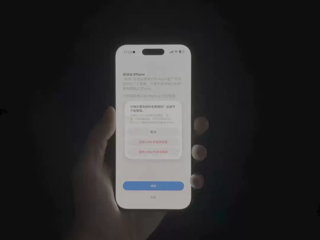 此外,在抹掉 iPhone Air 时,系统会提示你是否保留 eSIM 号码。因此不必担心类似操作或其它意外情况会导致 eSIM 号码从设备中丢失,频繁前往线下营业厅办理的情况。