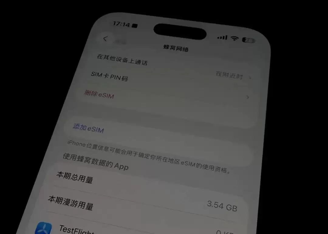 与Apple Watch 类似,已写入iPhone Air 的eSIM 号卡可以直接在系统设置中删除,以便机器可以写入其他号卡。