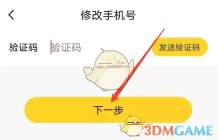 第三步:按要求输入验证码后点击下一步,最后填写新手机号完成绑定。