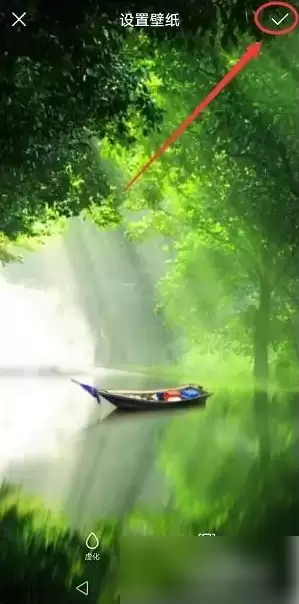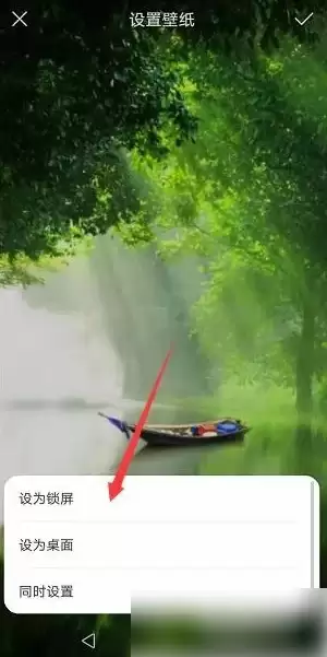 4、应用主题后,若想单独设置锁屏,请点击页面右上角的勾选图标。这时页面底部会弹出选项菜单,你可以选择设为锁屏、设为桌面或同时设定,具体界面如下所示: