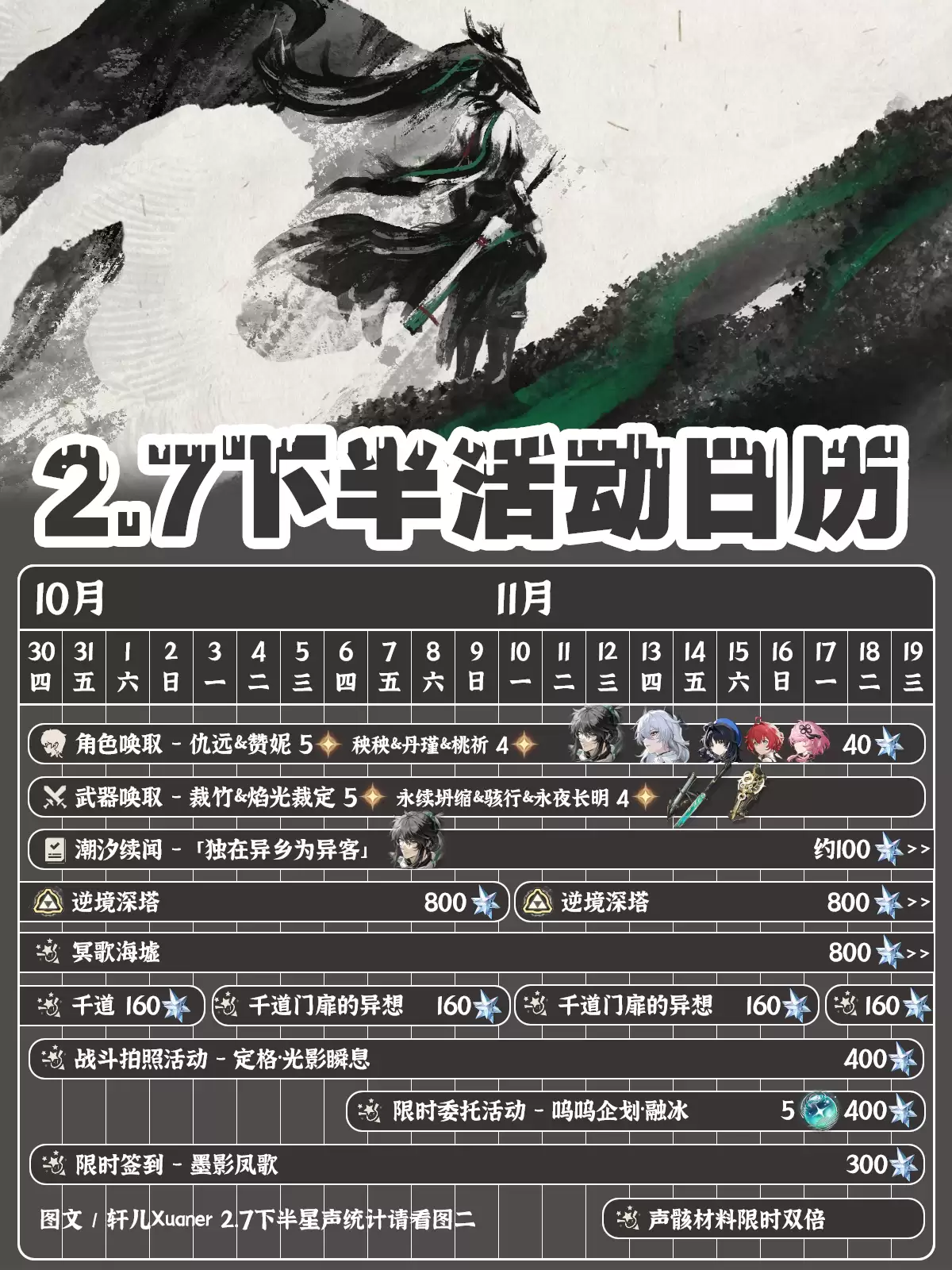 记得参与逆境深潭1期和千道门3期,两个常驻活动合计能拿到1280星声,千万别错过!