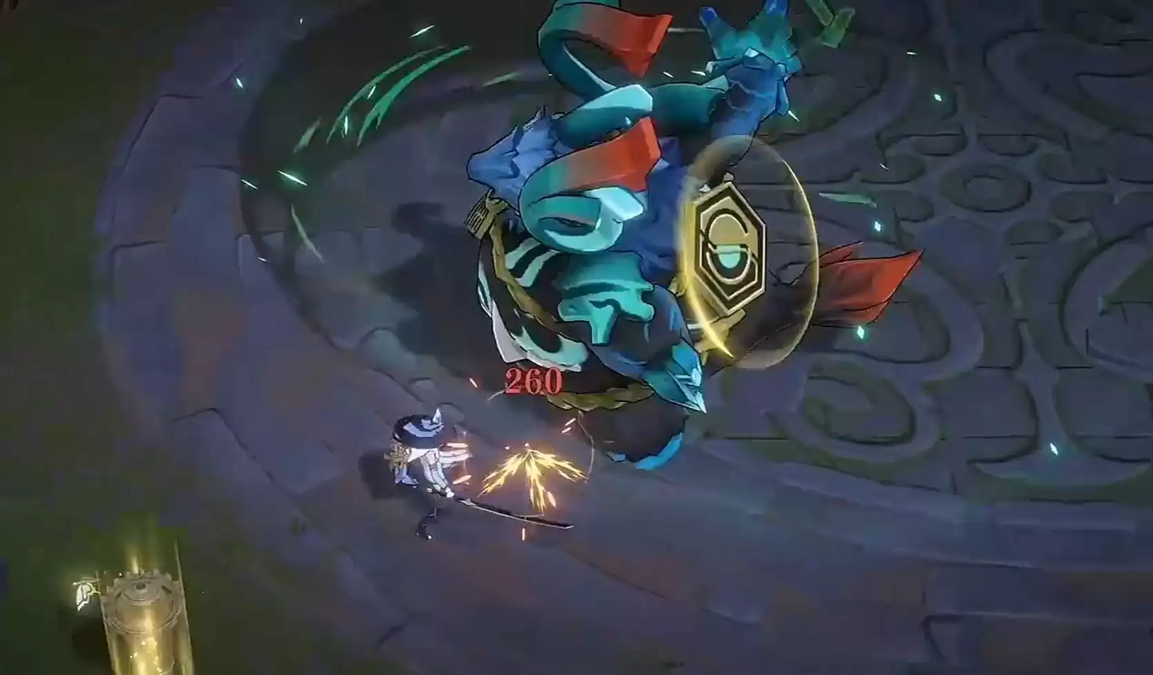作为霸主级Boss,青湲凶厄的弱点藏在背部,建议大家尽量以绕后作为主要输出方式。虽然它的攻击频率高,但单次伤害并不算特别夸张,通常血量较高的角色可以硬抗十次左右而不会倒下。不过青湲凶厄很容易发动连招,所以大家在挑战时一定要留意走位,不要贪刀。