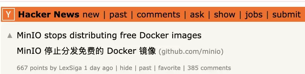 事实上,Hacker News上,也有网友透露,其实MinIO此举早有前兆,“文档几周前就被弃用了,现在连Docker镜像也不更新,开源项目可能要停滞了。”