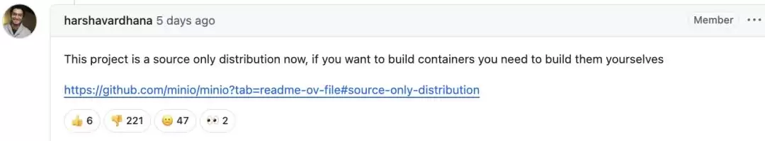因此,当MinIO宣布“不再发布镜像,仅提供源码”后,引发了社区的大量批评。更多用户指出MinIO: