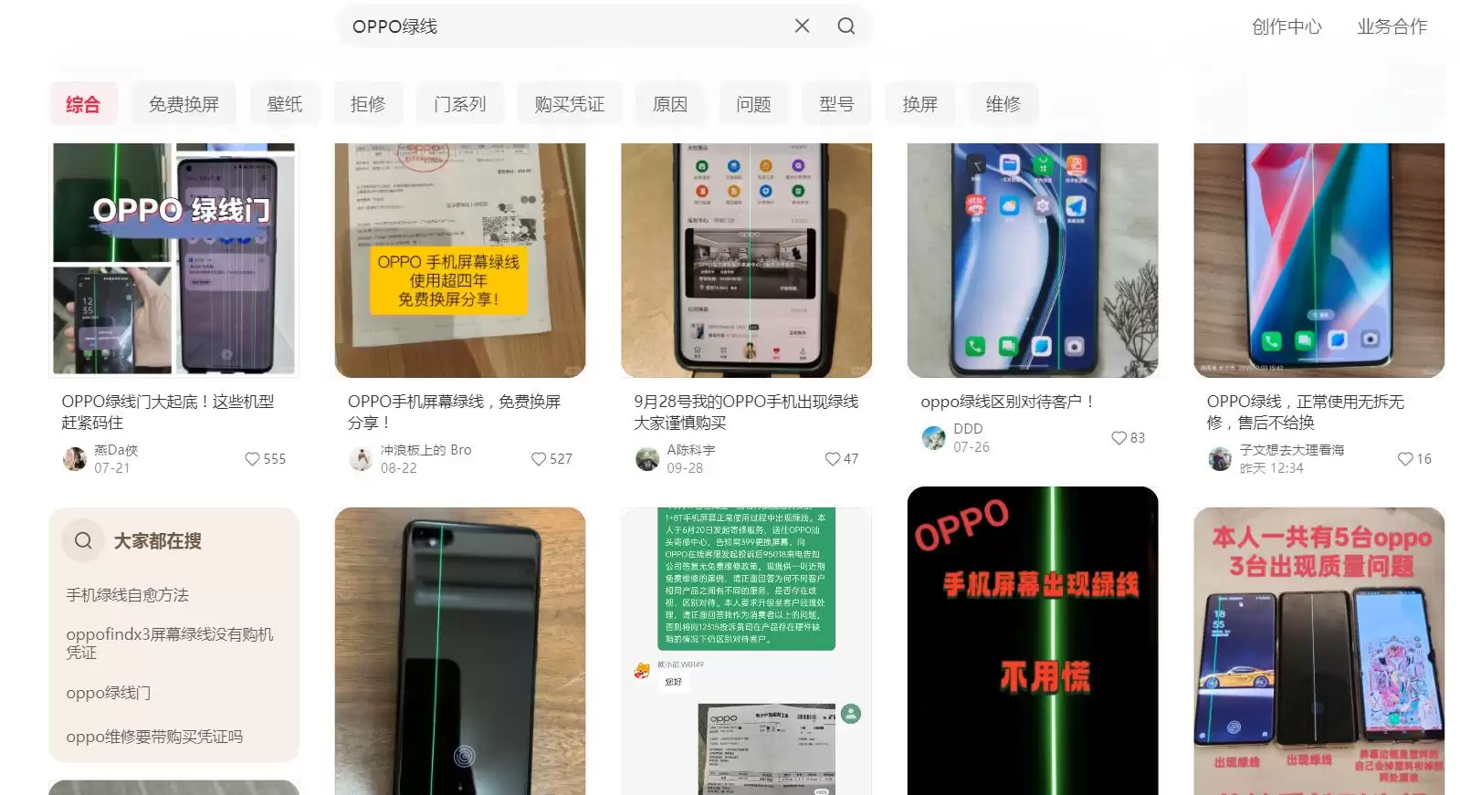 另据一刻商业报道,过去一年,OPPO的"绿线门"持续发酵,从Find X到Reno,再到一加系列,越来越多的用户反映使用两到四年后,屏幕中央突然划出一道垂直绿线,而在售后检测与质保认定过程中,却频频遭遇拒保、推诿。