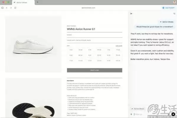 用户需要自己复制内容、拖拽文件到AI助手才能调用AI能力来解决问题,操作体验显然不够理想。与传统浏览器扩展相比,这种设计只是多了一些智能化。作为对比,ChatGPT Atlas则拥有跨页面智能能力,其"sidecar"功能让ChatGPT能够像空气一样弥漫在浏览器中,每个标签页打开都能直接唤醒ChatGPT。用户正在浏览的网页内容也能直接向其提问,无需进行复制粘贴这样的繁琐操作。