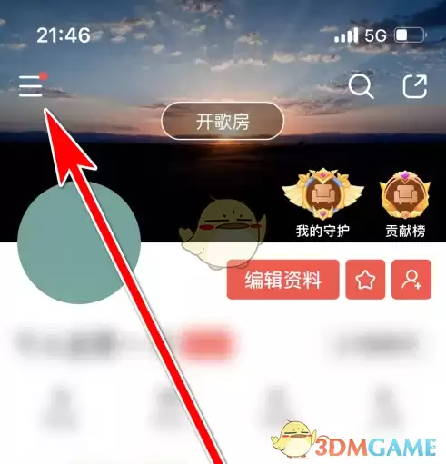 2、进入个人页面后,点击右上角的【三条横线】菜单图标。