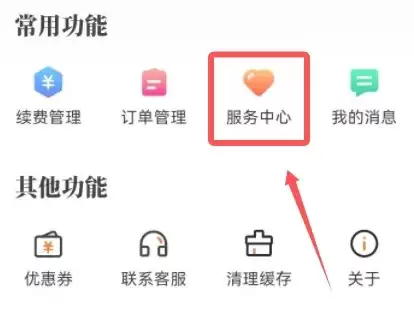 如果您在页面中找到了【服务中心】的选项,也可以直接点击进入。