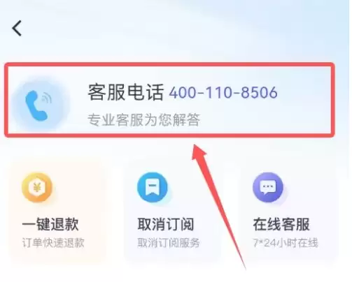 进入客服界面后,选择【客服电话400-110-8506】即可直接联系客服人员。