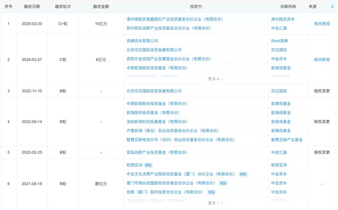 最近一次的C+轮则是2025年2月完成了10亿元人民币融资,由中金资本领投。