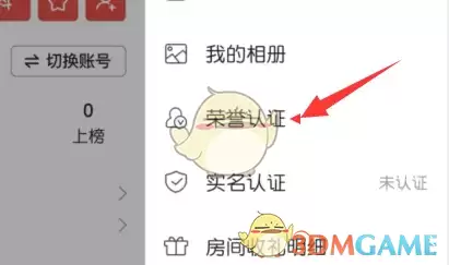 3. 在展开的侧边栏页面中,选择"荣誉认证"功能选项。