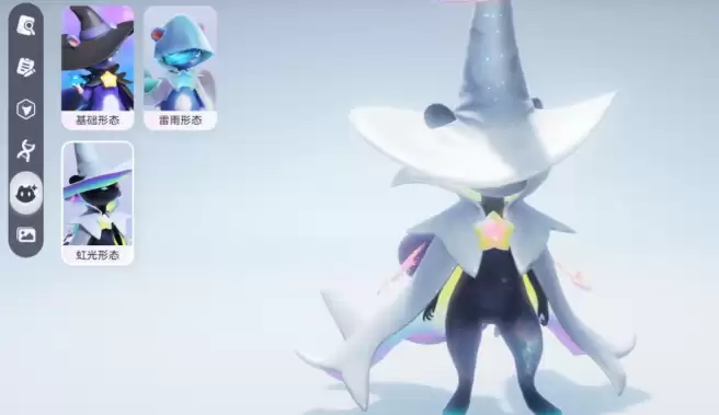 如果当前时间没有遇到虹光天气,也不用太着急。这类宠物会在这里定时刷新,而且大概率会在遗迹周边的树木附近出现。如果它躲在树荫下,找到后就可以尝试捕捉。当然,如果你想要的是虹光形态的星魔师,就要特别注意这一片区域显示的天气——如果不是虹光天气,抓到的星魔师基本都是普通形态的;只有在虹光天气下出现的星魔师才是真正的虹光星魔师。和普通星魔师相比,虹光星魔师在外观上会有更明显的闪亮特效。