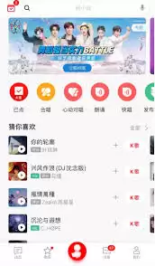 首先,打开手机上的全民K歌应用。进入主界面后,点击屏幕下方中央的“+”号按钮。