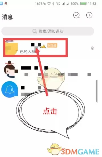 2、在打开的消息界面中,找到需要退出的学习群或学习讨论组,轻触该群组进入。
