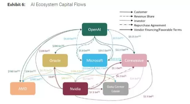 10月21日,摩根士丹利研报进一步指出,在此轮AI投资浪潮中,科技巨头正在以空前的规模签订长期、大额合约,形成一个相互依存、资本循环的“铁索连环”式生态系统。