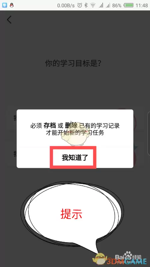 5. 如果您之前的学习目标尚未删除或已经存档,系统会弹出提示窗口,此时无法直接更改目标。