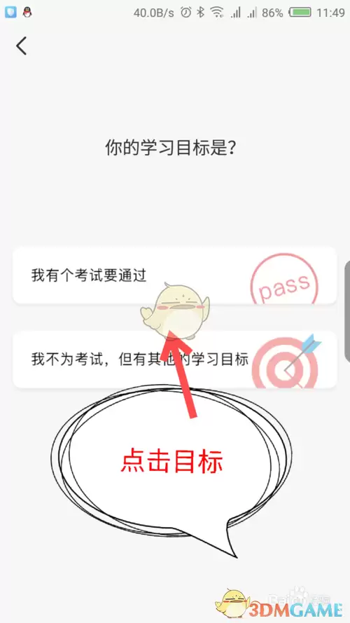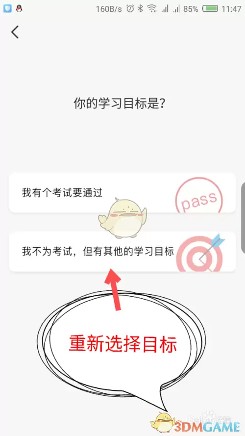 8. 成功删除后,返回到选择学习目标的界面,就可以重新设置新的学习目标了。