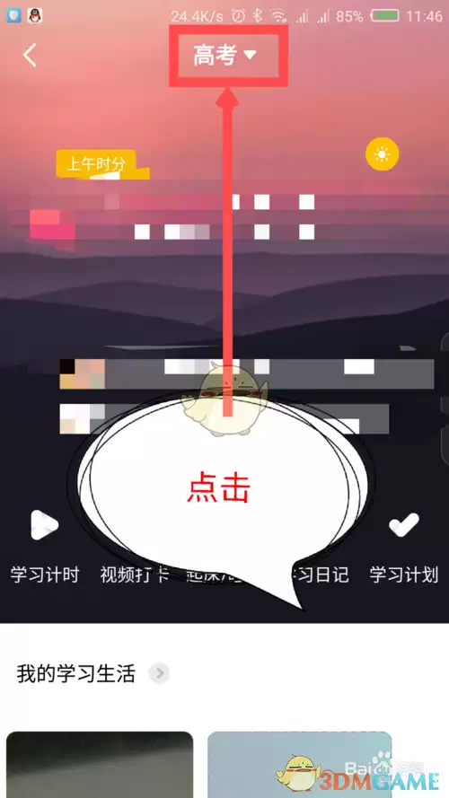 2. 点击T图标后,在弹出的菜单界面中找到顶部的学习目标选项,这里以高考目标为例进行演示。