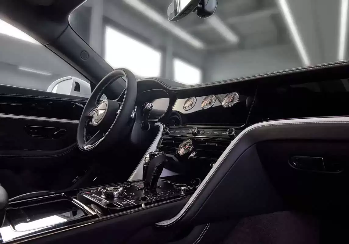 内饰空间以钢琴黑高光饰板为主材质,通过细腻的漆面工艺营造出如乐器般的精致质感。中控台区域保留了经典的机械仪表与实体按键,在数字化浪潮中坚持呈现传统工艺的温度。座椅采用顶级皮革包裹,缝线工艺与饰板纹理形成细节呼应,将汽车工程与艺术美学结合得恰到好处。