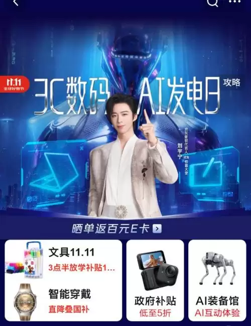 双十一京东购物节气氛正浓,你是否正为挑选琳琅满目的3C数码AI产品而眼花缭乱?别担心!京东特邀惊喜大使刘宇宁助阵,精心准备了多重专属福利——涵盖AI学习硬件、智能家庭存储、AI机器人、AI手机等九大前沿领域的3C数码AI热销榜单现已揭晓。想要一站式锁定心仪的3C好物,无需辛苦对比筛选,参考这九份榜单即可精准定位!打开京东APP搜索"3C数码11.11",直达AI产品主会场,还有机会与京东新锐代言人刘宇宁一起,探索专属于你的智慧生活新体验!
