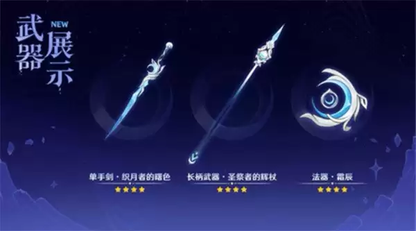 四星武器方面本期的【霜辰】尤为值得关注。这把武器不仅提供暴击伤害副属性,还能通过重击与战技触发元素精通增益,既可作为奈芙的过渡专武,也适用于纳西妲、八重神子、绮良良等依赖精通的角色。另一把【圣祭者的辉杖】则主打充能与攻击双修,非常适合菲林斯、雷电将军、香菱这类频繁施放战技的角色,是一柄实用性出众的中轴武器。