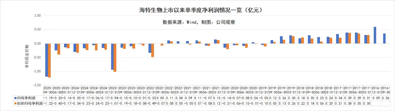 海特生物的业绩颓势已持续多年,2025年三季度的表现更是雪上加霜。