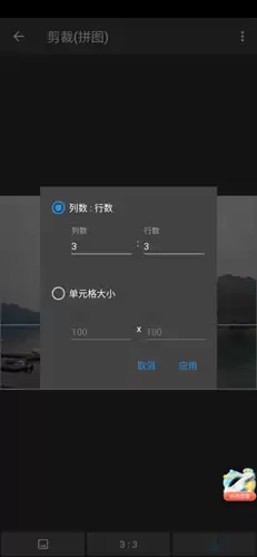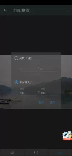 4、下行中间的按钮用于修改行数和列数,实现图片的组合裁剪,而单元格大小则用来调整拼图的宽度和高度;
