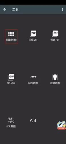 2、在工具页面中点击“裁剪(拼图)”按钮;