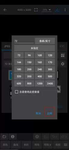 4、在像素设置页面中,选择合适的预设像素规格,然后点击应用按钮;