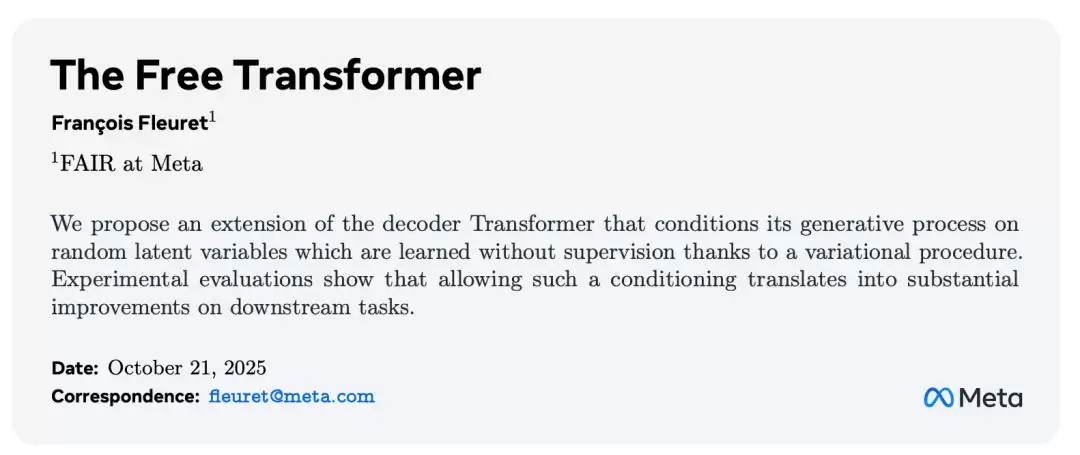 Meta最新发布的"自由变换器"架构在人工智能领域掀起热议,这项创新打破了自2017年以来所有GPT模型的核心生成模式:不再是逐个词语的渐进式猜测,而是在开始生成前就能进行"前瞻性思考"。