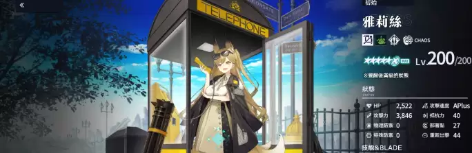 雅莉丝定位为范围压制型远程角色。虽然她的技能冷却时间较长,但能在广阔范围内进行持续输出,清图效率极高。BLADE技能兼顾前后场效果,先释放一次打击,后在退场时追加十余次连续攻击,覆盖范围非常广泛。她的被动技能让她开场即自带半管BLADE能量,能更快进入爆发节奏。雅莉丝的优势在于强大的群体压制能力,无论是推图还是多人战斗都能稳定发挥,是清怪与牵制敌人的可靠选择。