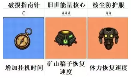 1.作为养成型游戏,资源为王,所以能带来资源增益的藏品可作为第一优先级升星核心以 恢复速度 + 资源收益 + 券票获取为主,第一个就是破损指南针,品质低+收益高,主要是好升级,获取的收益也很稳定;其次就是旧世能量核心,这个也很不错,优先级也是非常高的,挖矿的资源很可观;再就是核尘防护服,这个很重要+玩家也可以优先考虑,毕竟是体力是这个游戏的核心,没有体力什么都干不了。