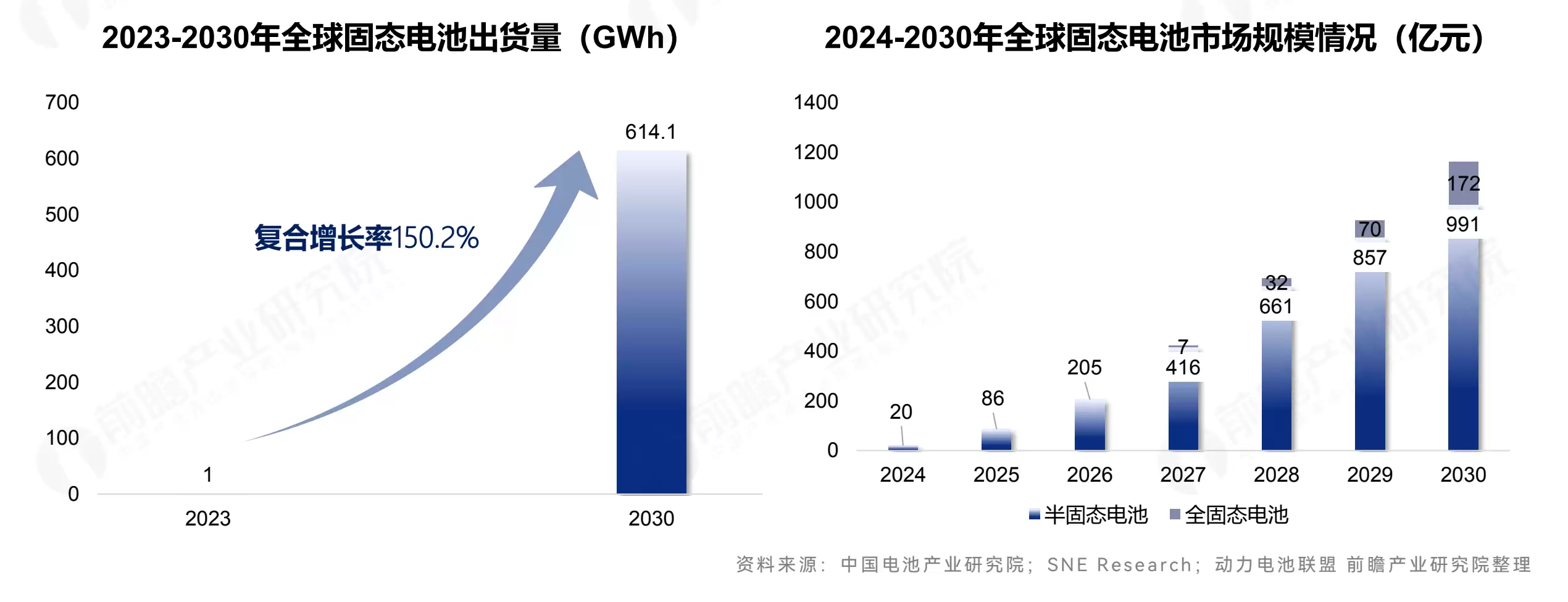 固态电池市场正迎来爆发式增长的机遇窗口。《2025年固态电池高质量发展蓝皮书》指出,目前固态电池的产业化进程已步入关键冲刺期。预计到2030年,全球固态电池出货量将达到614.1GWh,市场规模突破千亿元大关,其中半固态电池预计占据约85%的市场份额。凭借高能量密度与高安全性等显著优势,固态电池被视为推动新能源产业升级的核心驱动力。