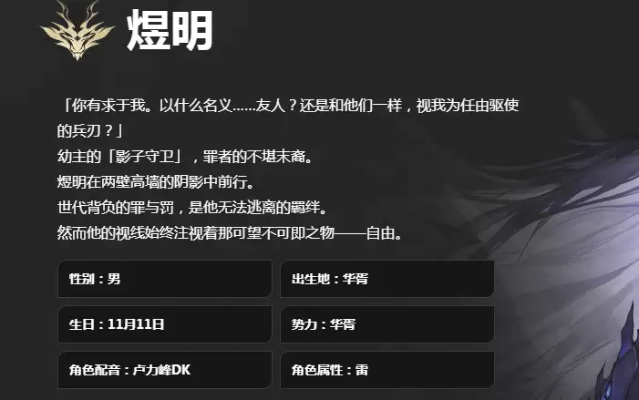 双重螺旋中的角色【燐明】该如何获得?这位雷系输出角色在游戏中以其忧郁气质独树一帜,不仅具备出色的伤害能力,还能有效抵御敌人的攻击。即便星级不算顶尖,只要运用得当,他完全能成为战场上的核心战力。那么燐明的具体获取途径是什么?今天就为大家详细解析获取方法,并分享获得后如何充分发挥这个角色的潜力。