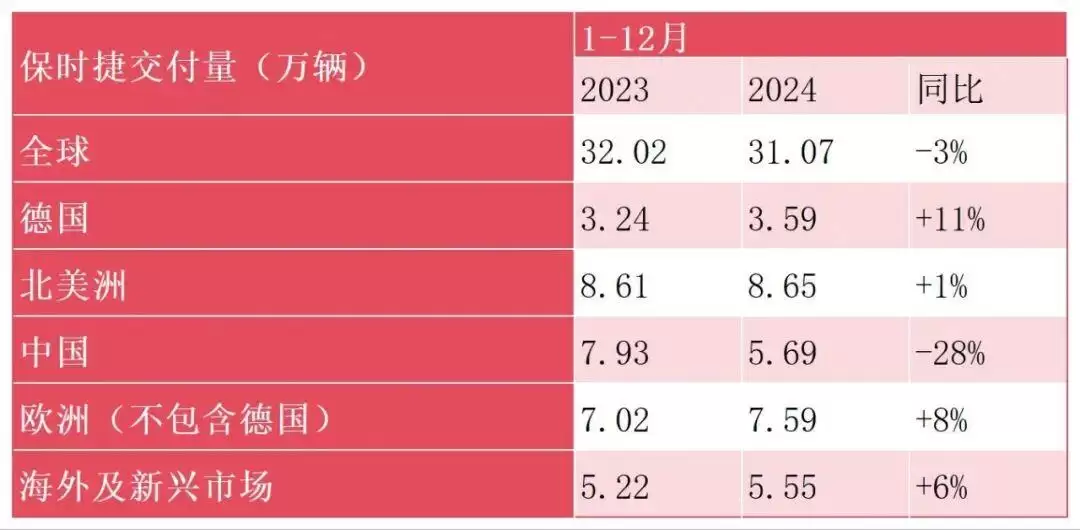 早在最辉煌的2024年,保时捷在华销量就已显露疲软,暴露了下滑趋势。但得益于其他市场的增长,保时捷的整体经营尚属稳健。