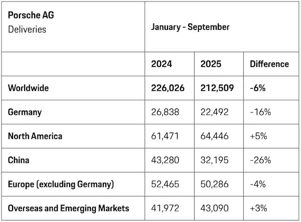 正如奥博穆所预料,中国市场的销量下滑,对保时捷的影响具有长期性。2025年前三季度,保时捷在中国市场仅售出32195辆,跌幅高达26%,全球占比从巅峰时的30%缩水至15%。