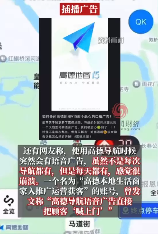 最近,不少网友发帖吐槽说,高德导航的语音播报竟然夹杂着广告内容。