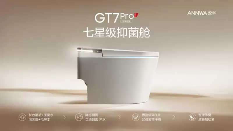 在如厕场景,重新定义"健康洁净标准":安华全新推出的GT7Pro智能坐便器,融合电解水除菌、长效阻垢过滤、无菌水冲洗、智控感应泡沫盾与合金净味科技于一身,实现了节能省水与全方位健康呵护的完美融合。其卓越设计更是荣膺2025德国iF设计大奖,成为行业品质新标杆。
