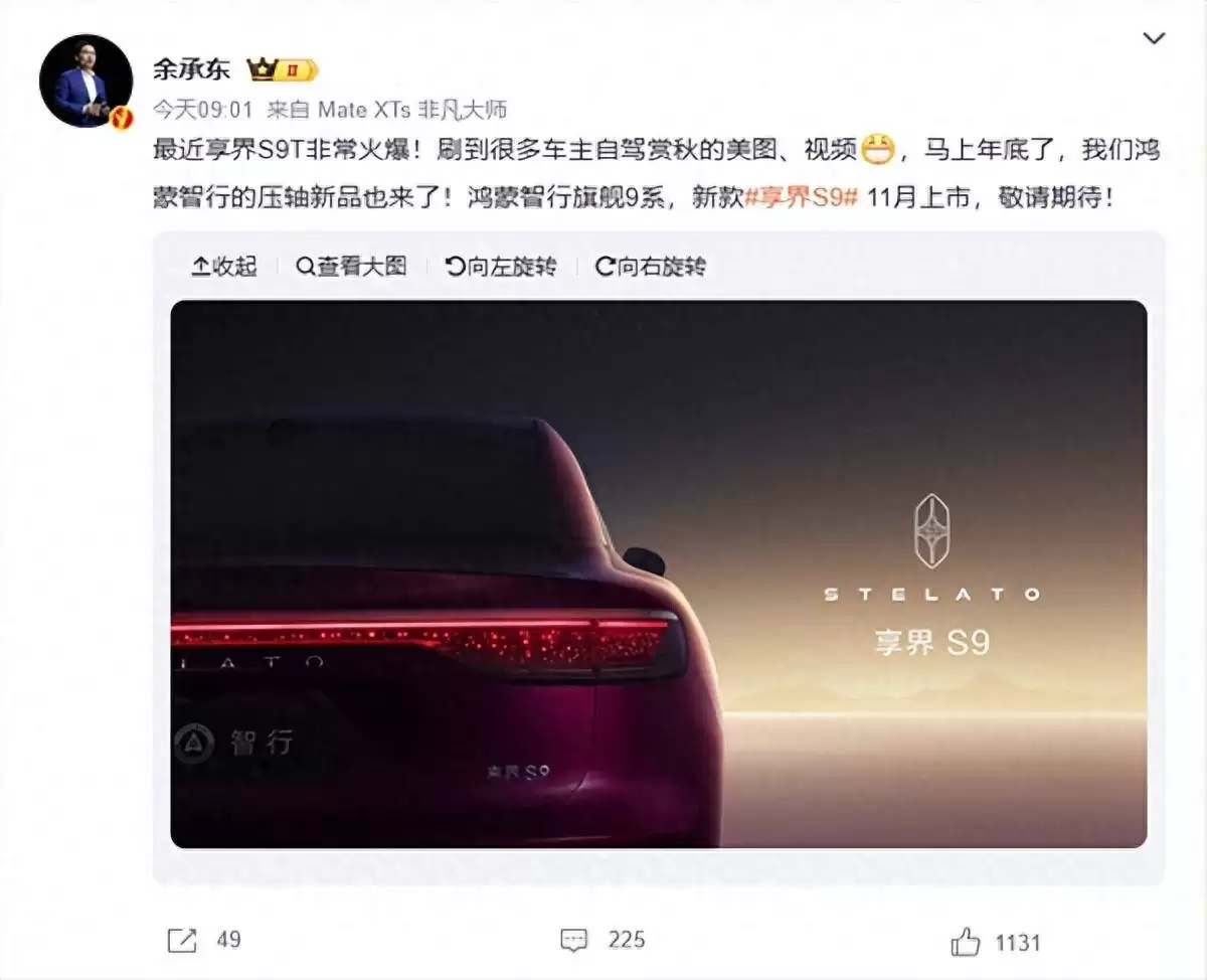余承东揭秘享界S9:华为科技双加持,11月上市对标宝马5系56万