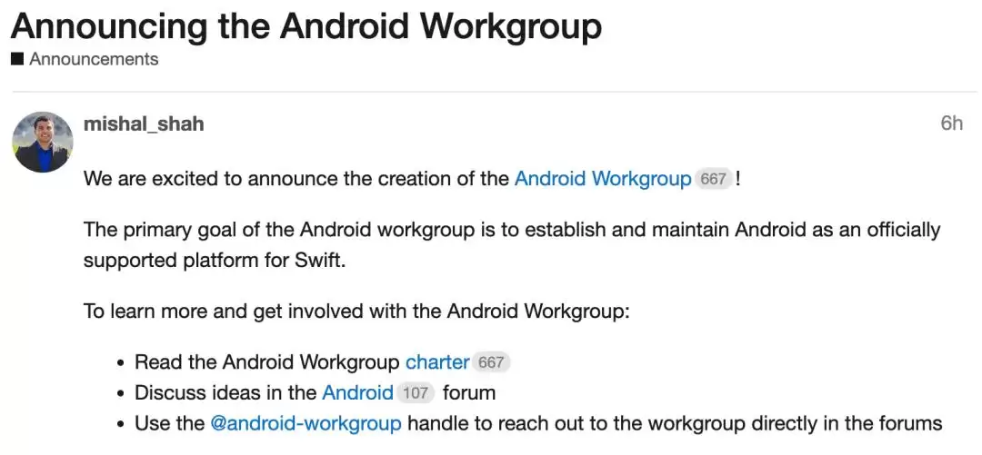 其实这项 SDK 的推出,源于今年早些时候成立的 Swift Android 工作组。