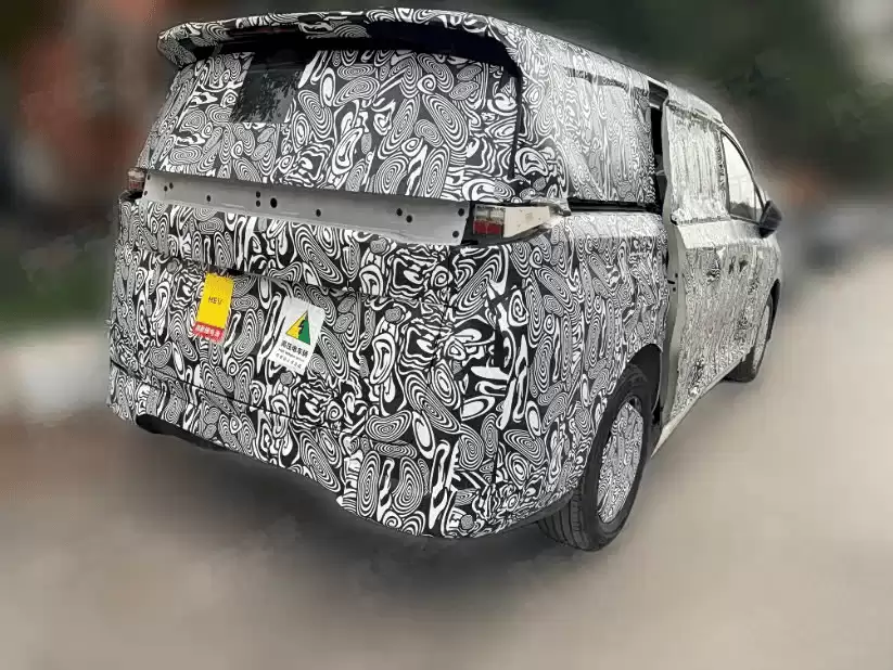 尾部设计通过伪装贴纸的起伏轮廓可推测,新车将采用贯穿式尾灯组设计,尾门顶部配备大尺寸扰流板,这种运动化元素的加入打破了传统MPV车型的沉闷感。后保险杠区域的设计细节因伪装覆盖暂时无法观察,但整体造型预计将与前脸设计形成呼应。