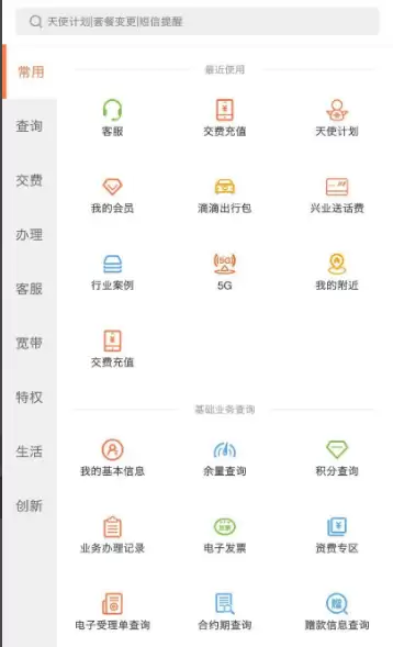 下载安装中国联通手机营业厅APP后,我们打开首页即可看到各类服务入口,从这里点击就能直接进入所需功能。