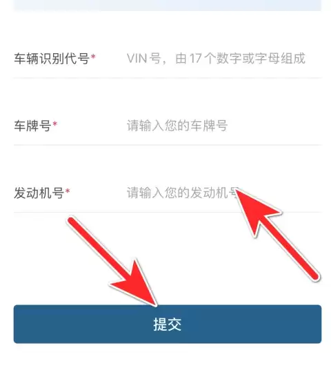 第四步:根据提示填写完整的车辆信息,确认无误后点击【提交】,即可成功绑定您的爱车。