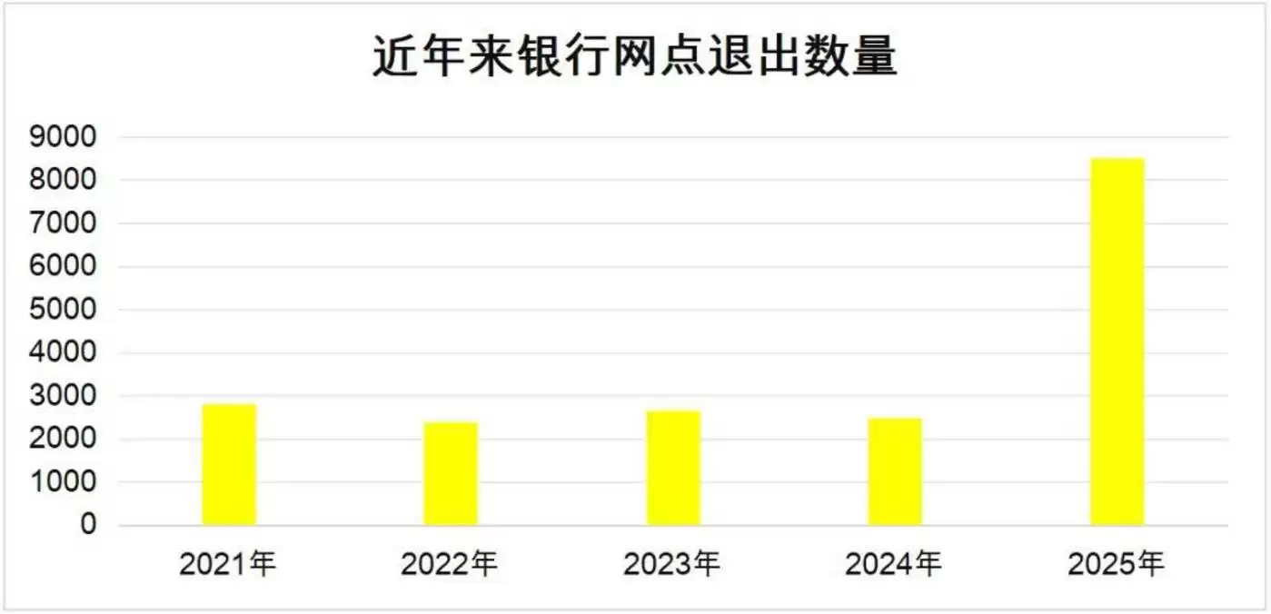 数据显示,2024年商业银行获批裁撤、关闭的网点达2649家,2025年这一数字再度攀升至新高。
