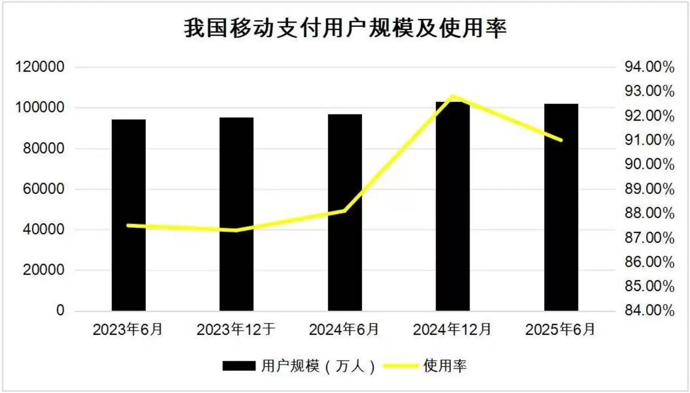 截至2025年6月,我国移动支付用户规模达10.22亿人,占网民整体的91.0%;个人手机银行、企业网银用户比例达88%,转账、理财等高频业务线上普及率超90%,线下客流量近五年下降60%。