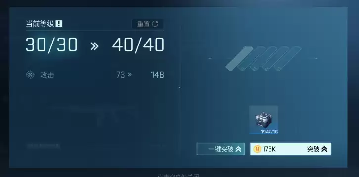 除基础枪械属性外,武器的养成系统同样值得关注。武器养成可通过突破机制实现升级——当角色等级分别达到30级、40级、50级、60级、70级时,均可进行突破。以指挥官角色为例,若其等级达到35级,而武器尚未突破,则武器等级将长期停滞在三十级。完成突破后,不仅会提升武器的等级上限,还会解锁更多配件。每个配件的解锁条件需要玩家在游戏中仔细查阅,这些设计都是为了进一步提升武器的实战输出能力。